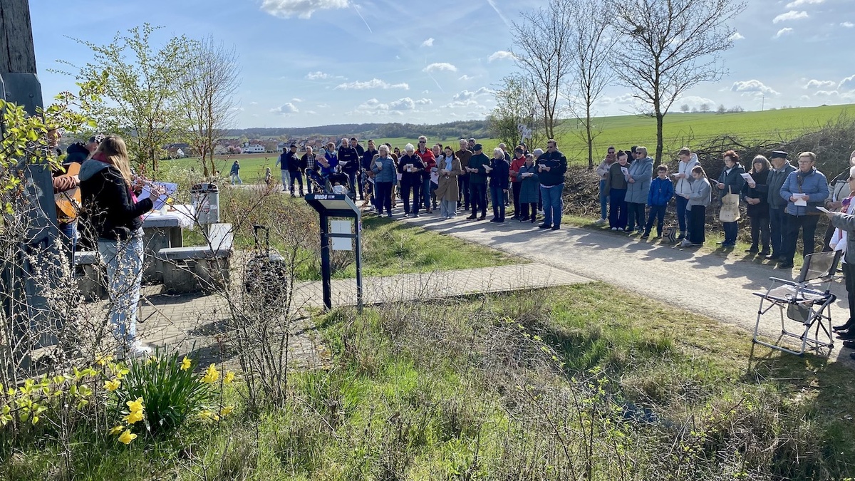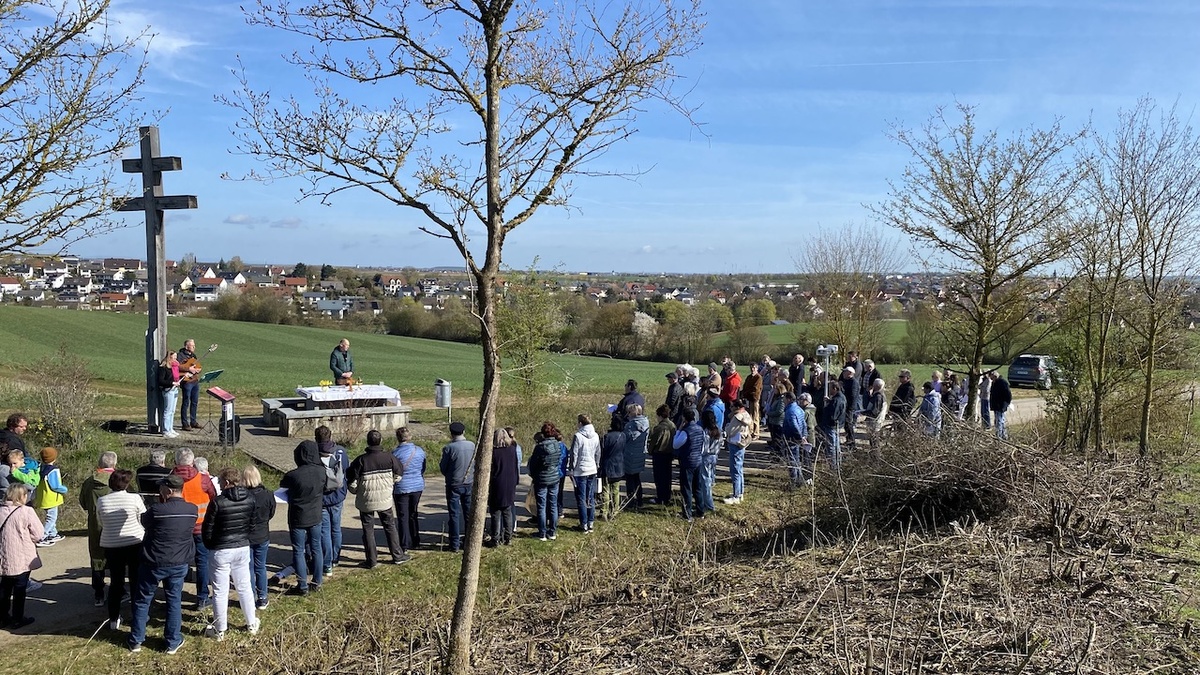 So erreichten die Kürnacher und Estenfelder Emmausgänger das Patriarchenkreuz, wo wir gemeinsam einen Wortgottesdienst feierten.