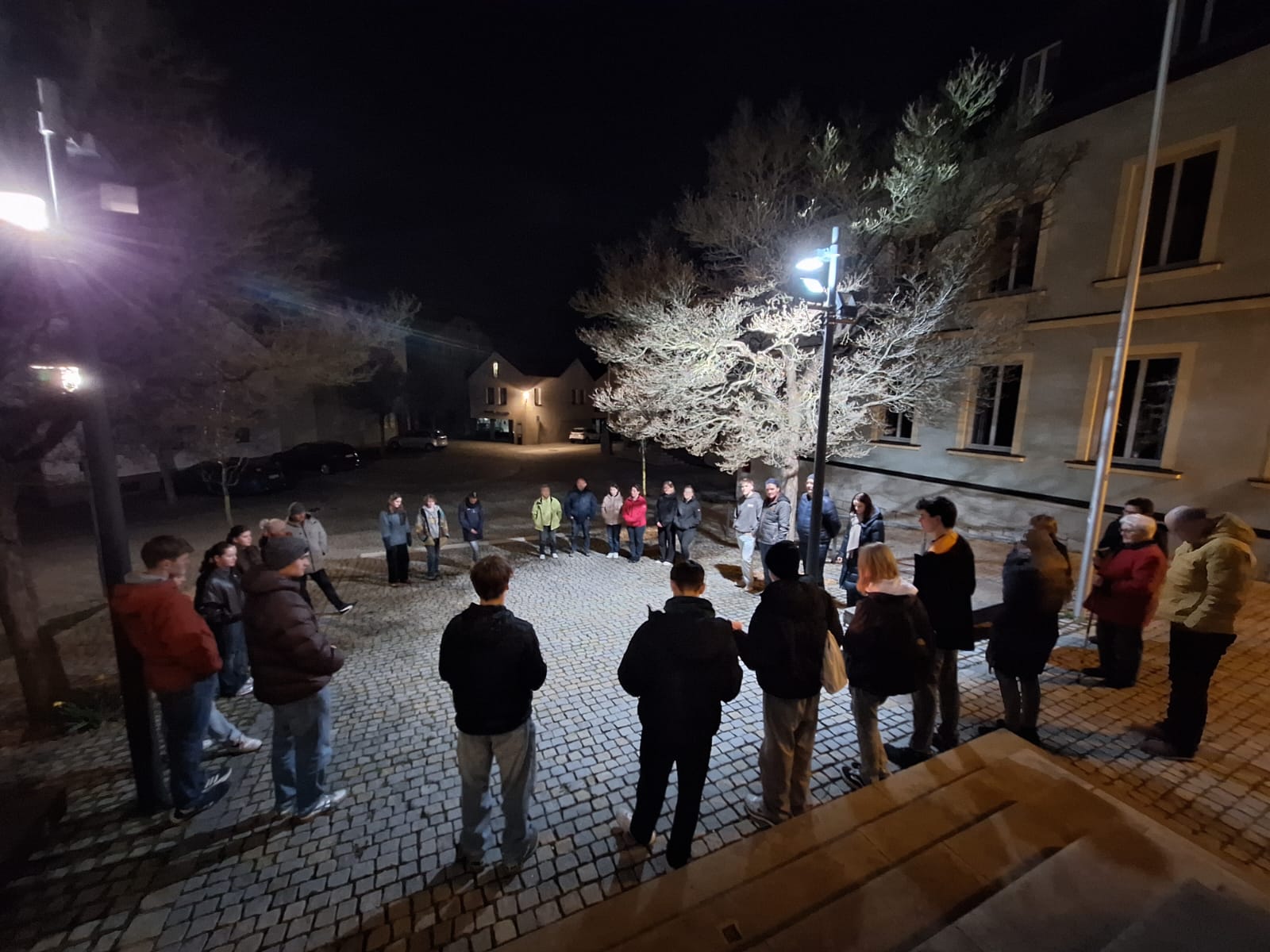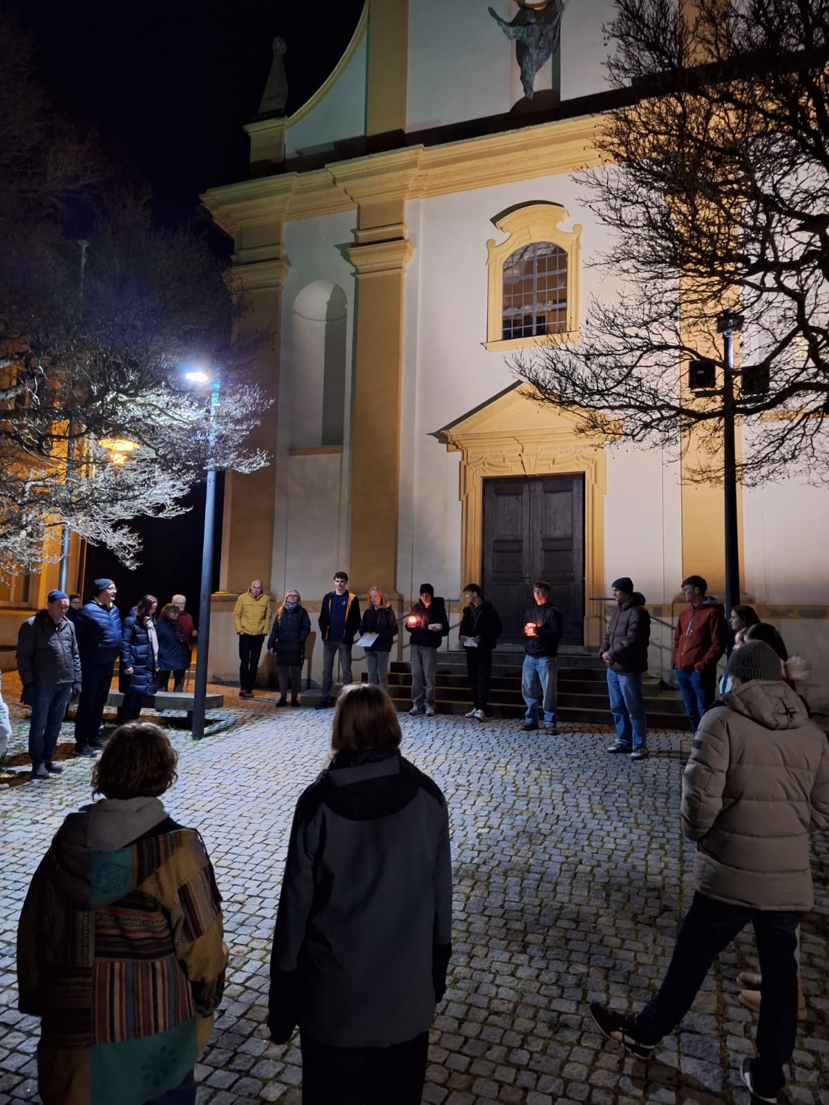 Am Gründonnerstag lud die Jugendleiterrunde nach dem Gottesdienst erneut zu einer besonderen Ge(h)betsstunde ein. Rund 30 Jugendliche und junge Erwachsene folgten der Einladung und machten sich gemeinsam auf den Weg. In einer ruhigen und zugleich intensiven Atmosphäre führte der Weg zu mehreren Stationen, die zum Innehalten, Nachdenken und persönlichen Gebet einluden.
