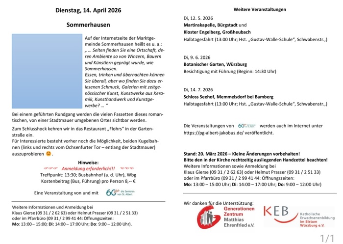 60plus - Die Senioren von Sankt Albert, Lindleinsmühle, Sommerhausen