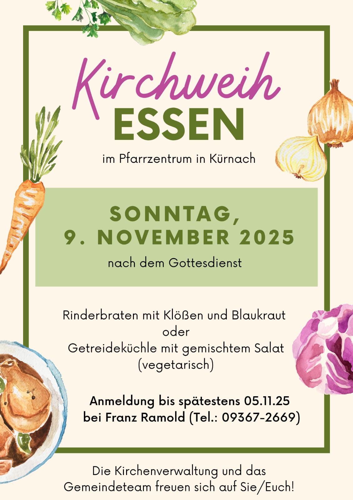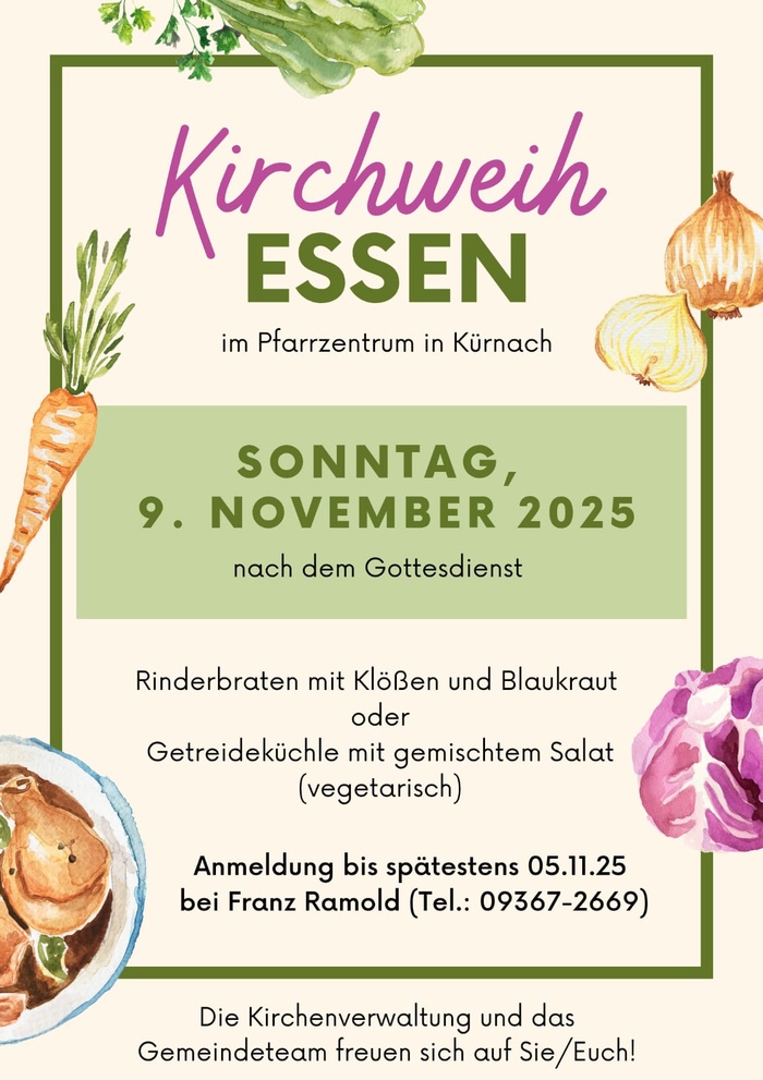 Nach dem Gottesdienst findet das Tradionelle Kirchweihessen statt.
