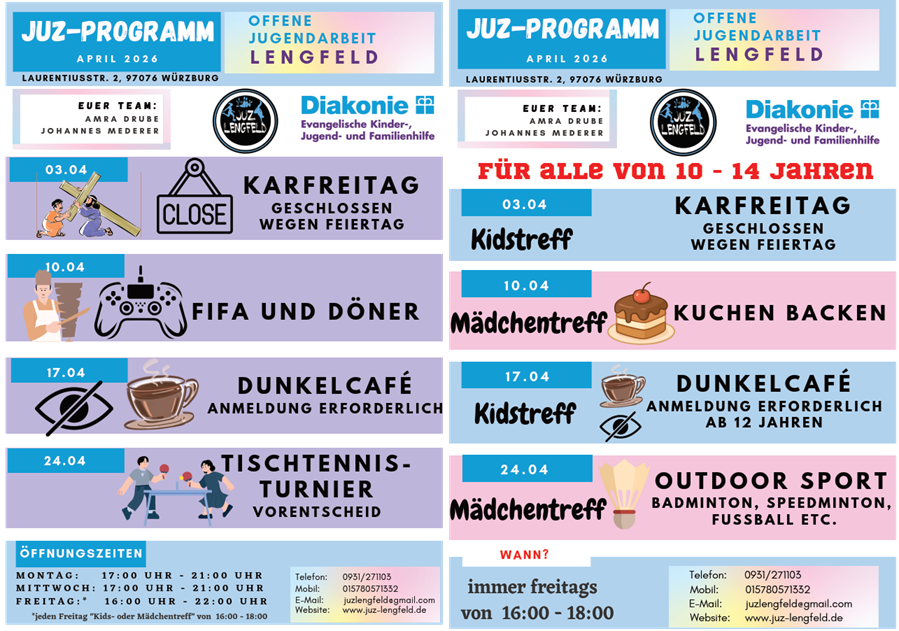 JUZ-Programm und KidsTreff/MädchenTreff (10-14 J.) mit: Amra Drube und Johannes Mederer