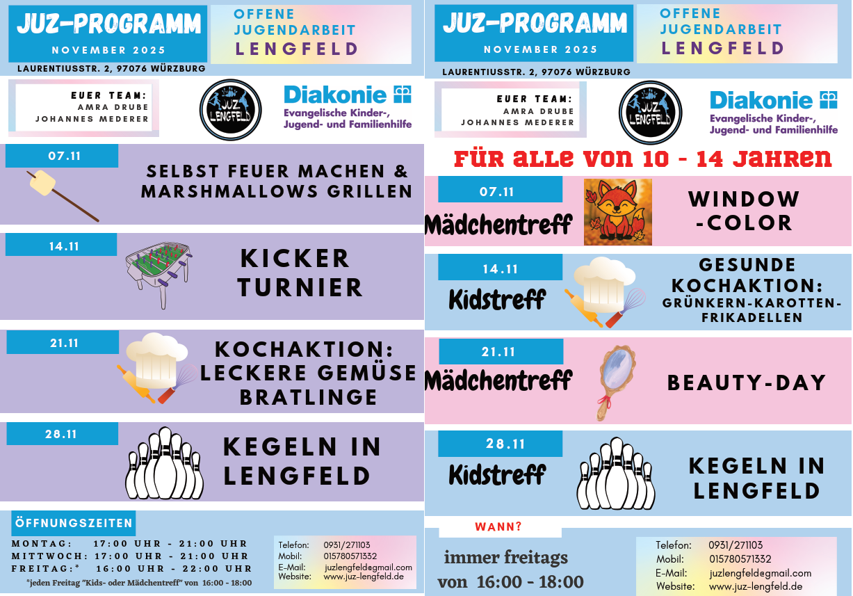 JUZ-Programm und KidsTreff/MädchenTreff (10-14 J.) mit: Amra und Johannes