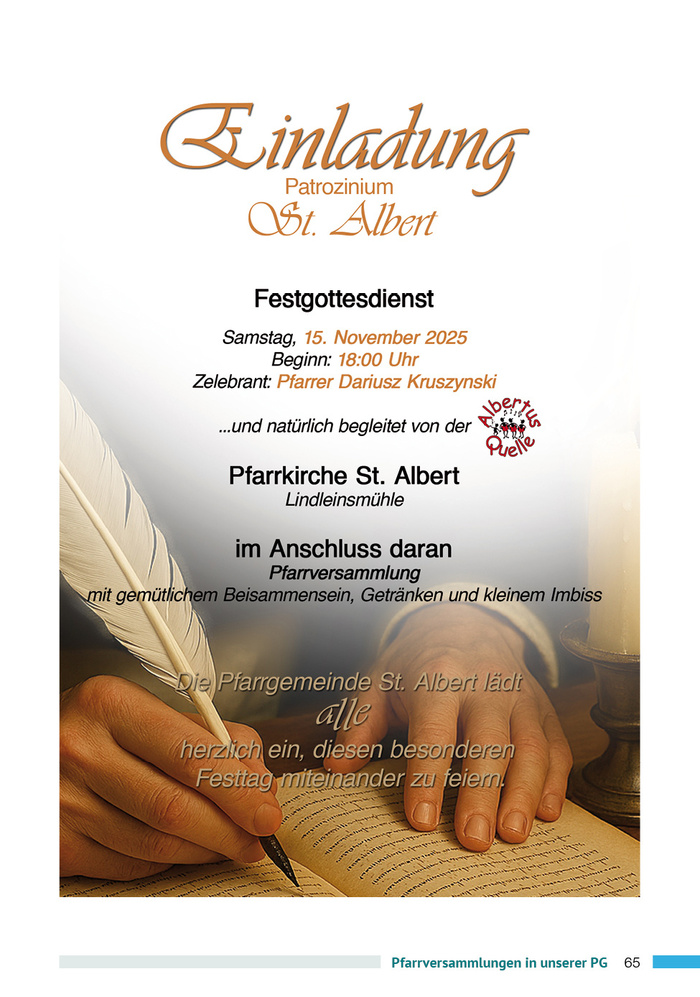 Die Pfarrgemeinde St. Albert lädt ALLE herzlich ein, diesen besonderen Festtag miteinander zu feiern.