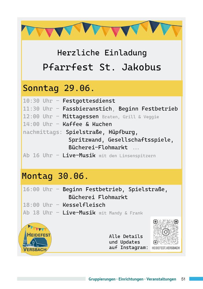 16:00 Uhr Beginn Festbetrieb, Spielstraße, Bücherei Flohmarkt